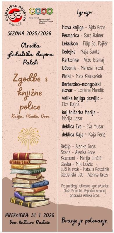 Premiera igre je bila v soboto 31. januarja 2026, v Domu kulture v Radečah, ob 18. uri.